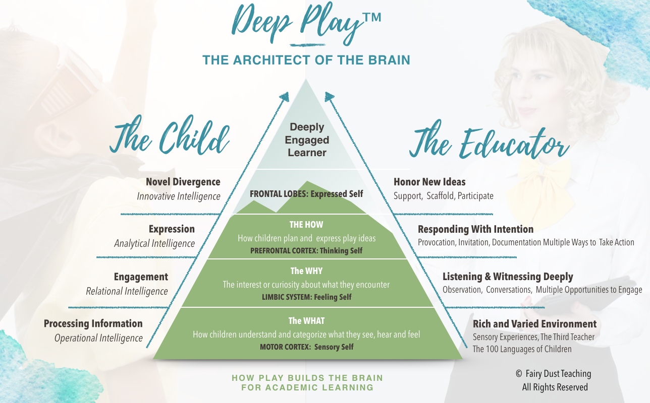 The people I reached out to with the question, where do I go to learn to read play, kept coming back to me with the same answer, check out Fairy Dust Teaching. I signed up for their Deep Play: The Architect of the Brain workshop. In that I found this graphic depicting the stages of play.